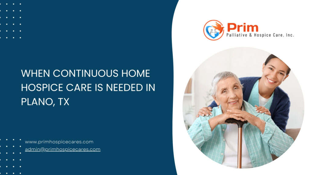 Continuous home hospice care in Plano, TX, is a higher level of hospice support used during short-term medical crises. It is appropriate when symptoms cannot be managed solely through routine visits and require close, ongoing monitoring at home.